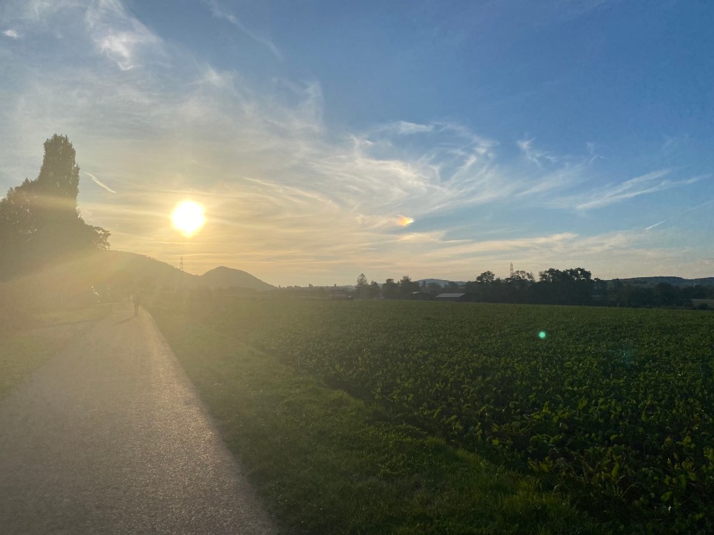Then it’s right out of the cornfield and along quite a long stretch of paved road past – surprise! – more cornfields and sunflower fields. Eventually, finally, you turn left onto some loose gravel again, which curved slightly up before turning into a generous downhill that deposits you on the paved road you started on, turning left at the bottom and immediately seeing just a short while away the starting line and the soccer fields. It’s lap one, your legs feel strong, your lungs full of powerful oxygen, your skin a little sun-kissed. 10-15 minutes of rest await you, and then it’s back to the start!
