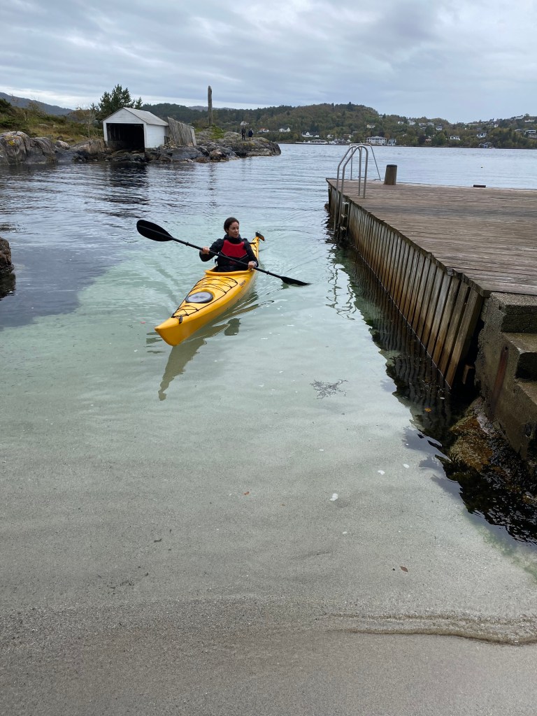 “I’ll go in first and then I’ll help you in,” she told me, but I was barely listening. As I nodded, I felt the wake from the camouflage boat hit the shore and suddenly I was gliding off the beach and out into the fjord. Before I could think, the kayak listed to the right and within seconds, I was soaked. My arm, which I’d plunged into the water to anchor myself, was drenched up to my shoulder. The kayak filled with water, as did all of my clothes. Somewhere behind me, Kelly was scrambling to grab the end of my kayak and pull me back up. I decided to stick to the land for now and went for a run instead.