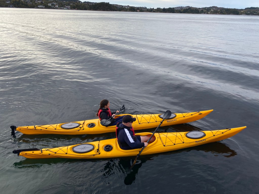 Back when we were planning the trip, we’d debated whether we wanted to stay someplace in town or if the attractive AirBnB out in nature was the way to go. Each had its advantages: town offered food and entertainment in walkable distance, for one, but the AirBnB offered serene Norwegian nature, kayaks, and a hot tub. If we were lucky, like one guest a few weeks earlier, we might even glimpse the Northern Lights from the deck. Dreamy.