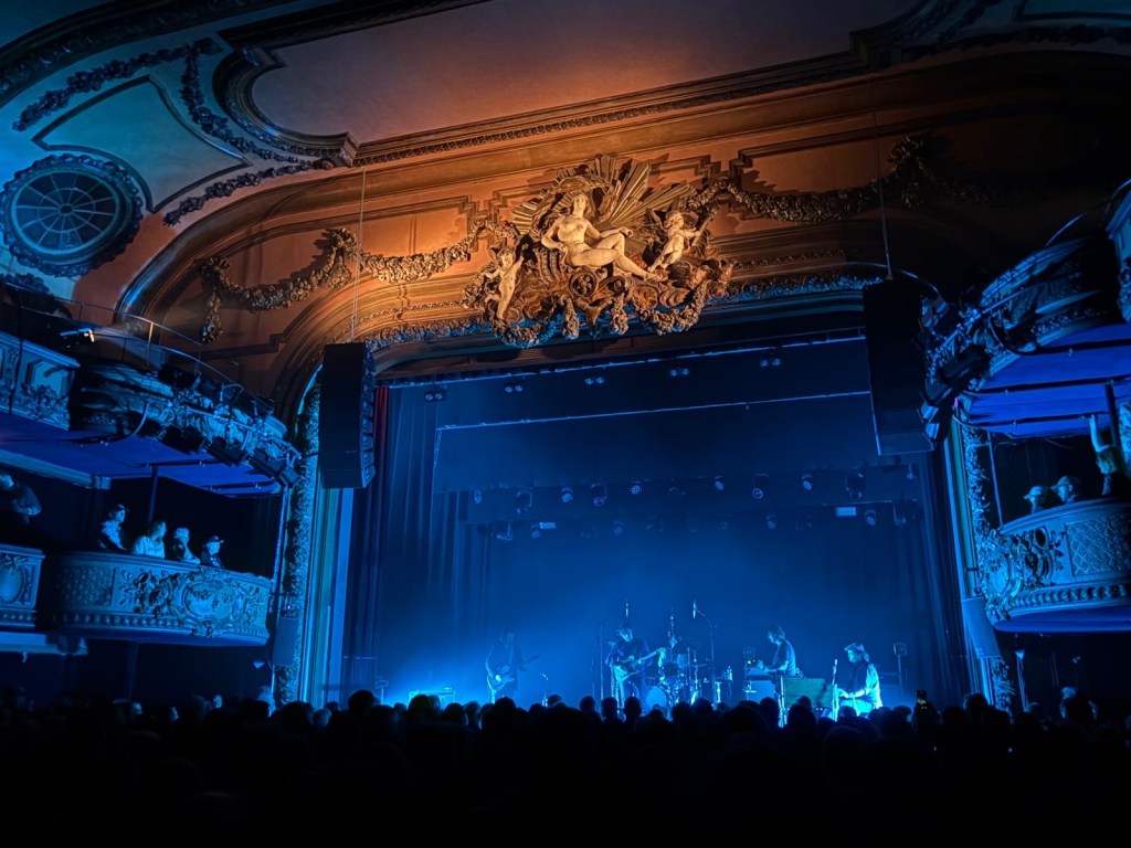 “I think it’s because we’re on the second floor,” Holly guessed. I had a flashing vision of all of us bouncing too hard and suddenly falling through the floor, but then I calmed myself. Surely Sturgill Simpson is not the bounciest artist they’ve had here. The theater was grand. There were statues and carvings and beautiful, ornate balconies above us where people sat or stood dancing and waving their beers around so that occasionally, those of us below were misted by Carlsberg. But that was OK. Everyone was in good spirits, hollering and shouting along with the music, and when there was a quick lull – and I mean quick, because they basically played for 3 hours straight without resting – the occasional French person called out, “Sturgill!” pronounced “StewrJIL!”