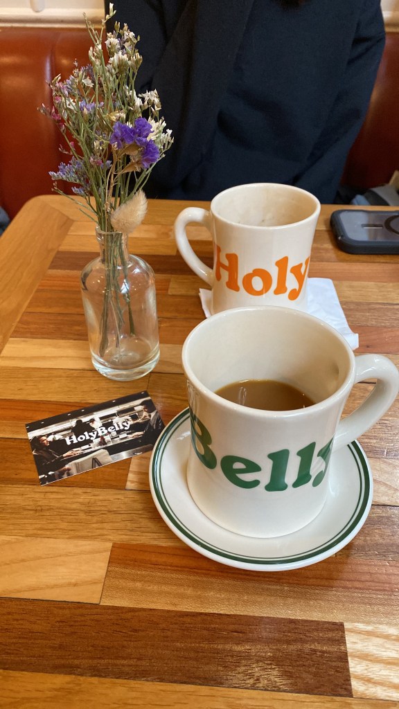 Mais non! Our favorite breakfast place is called Holy Belly and, we think, is staffed by Americans. HolyBelly was a 25-minute walk from our hotel and opened at 9am. We knew from the summer that a line forms outside and if you’re not in it by opening, you’re waiting. We arrived just before 9 and already the sidewalk was full of people.