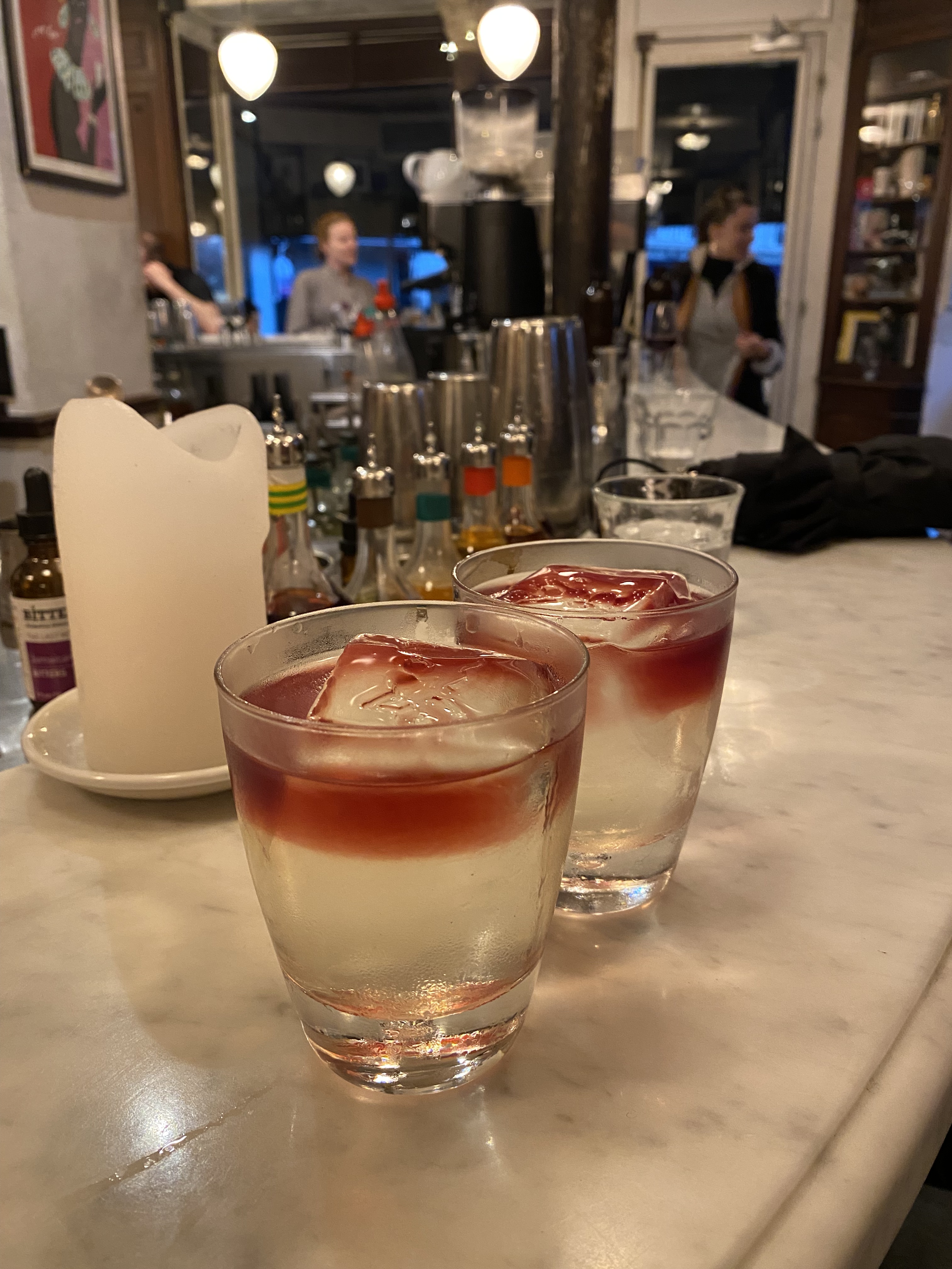 Train travel is lovely but somewhat tiring, so we relaxed in our tiny room. Holly opened the tall balcony windows and let the early spring breeze carry Michael Jackson’s greatest hits from the bar across the street into our room. The forecast warned of heavy rain and localized flooding to begin around 6, so we made our way out to a cocktail bar called Classique.