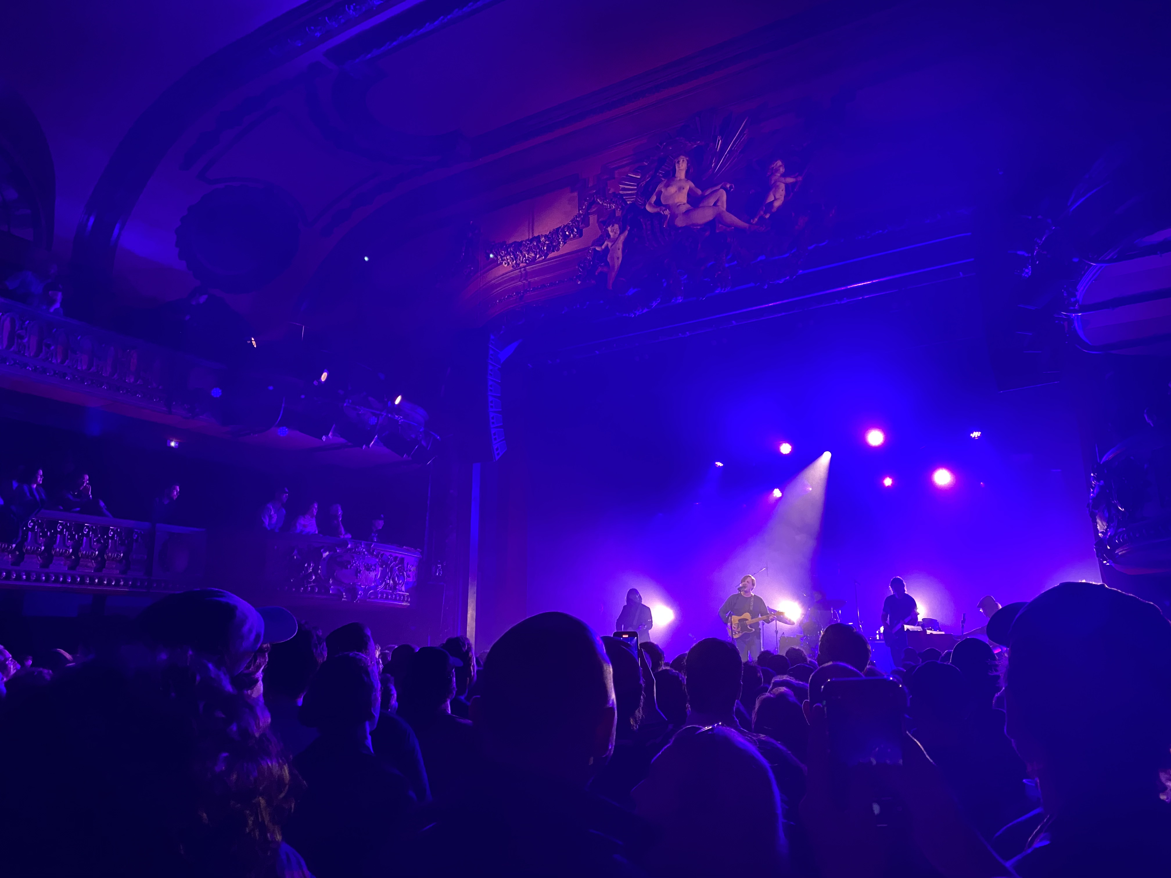 “I think it’s because we’re on the second floor,” Holly guessed. I had a flashing vision of all of us bouncing too hard and suddenly falling through the floor, but then I calmed myself. Surely Sturgill Simpson is not the bounciest artist they’ve had here. The theater was grand. There were statues and carvings and beautiful, ornate balconies above us where people sat or stood dancing and waving their beers around so that occasionally, those of us below were misted by Carlsberg. But that was OK. Everyone was in good spirits, hollering and shouting along with the music, and when there was a quick lull – and I mean quick, because they basically played for 3 hours straight without resting – the occasional French person called out, “Sturgill!” pronounced “StewrJIL!”